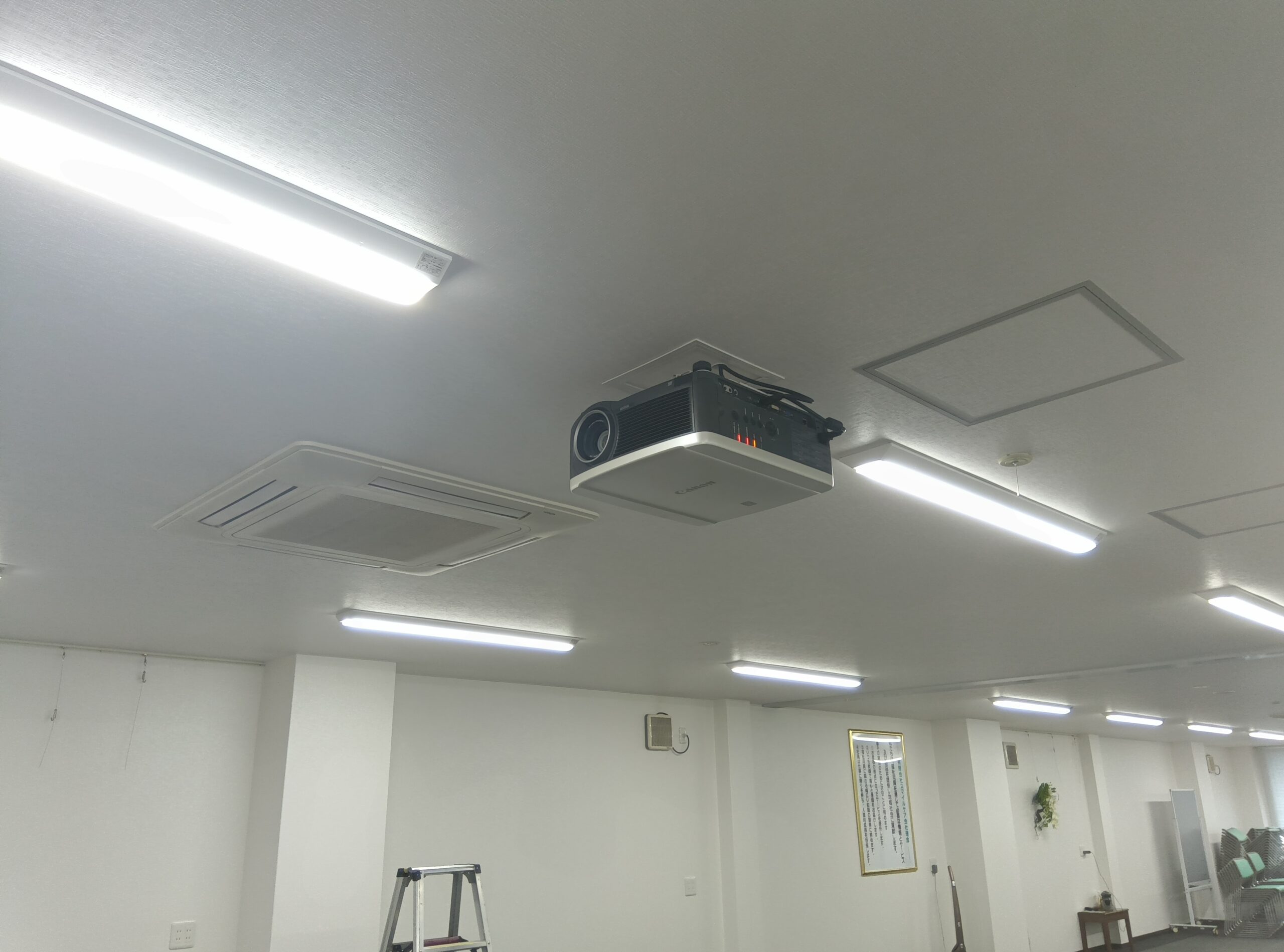 以前よりお付き合いのある法人様より、研修室のプロジェクター入れ替え工事のご依頼をいただきました。