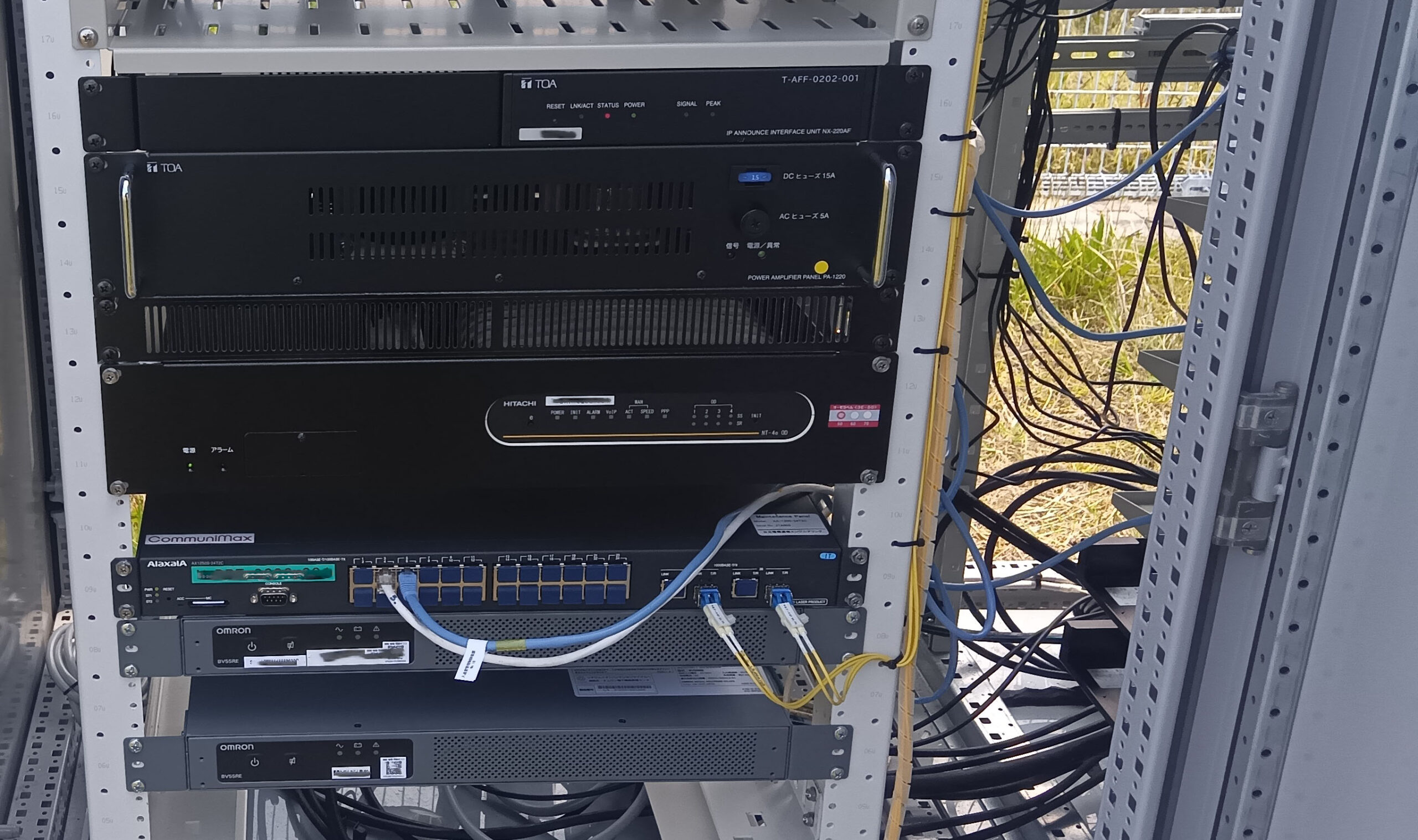 屋外に設置された67台の端末更新に加え、放送をコントロールするPC端末や音響周辺機器一式を刷新。